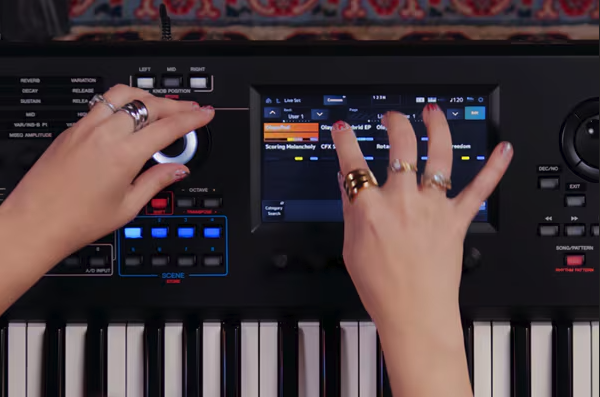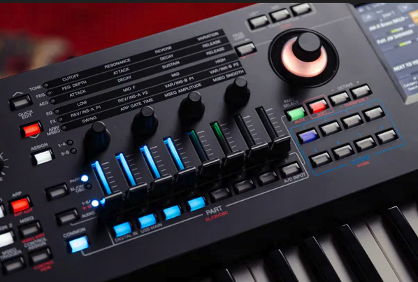 パフォーマンスごとに8つのパートをコントロールするための、専用のパート選択ボタンとシーン選択ボタンが用意されています。特にライブパフォーマンスに効果的なこの直感的なコントロールは、全体的な操作性を向上させ、各パフォーマンスに奥行きを与えます。