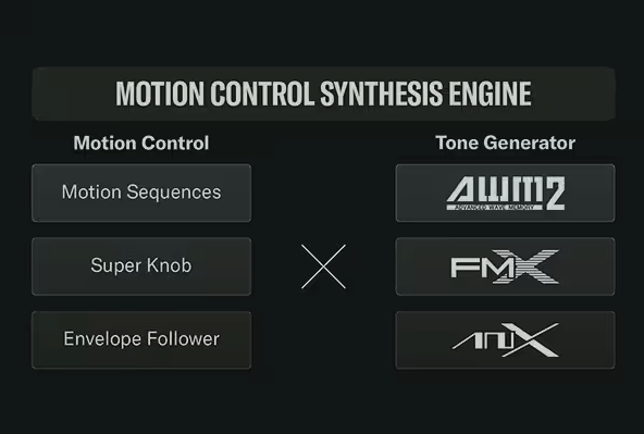 Motion Controlは3つのシンセエンジンを統合し、演奏者にインタラクティブな表現力を提供します。