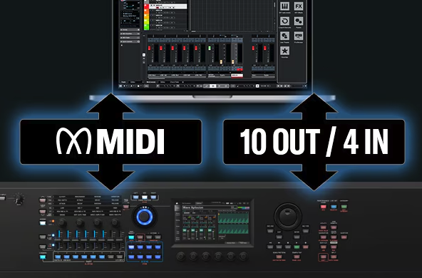 MODX MはUSB MIDI & AUDIO(10 OUT / 4 IN)インターフェース機能が、シンプルで機能的なスタジオセットアップを実現します。USBケーブル1本で効率的にMIDIレコーディング、バーチャル・インストゥルメントのモニタリング、マルチトラック・レコーディングを行うことができ、より多くの時間をクリエイティブな作業に割く事ができます。