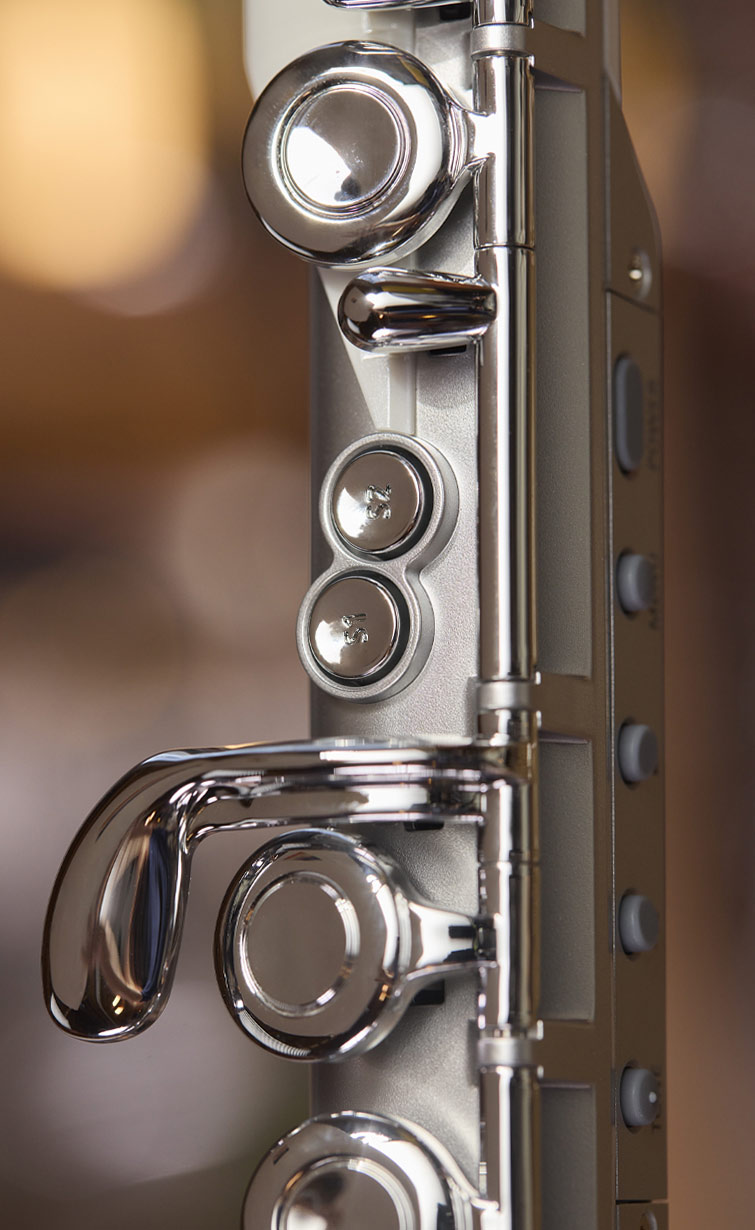 新開発のデュアル・ブレス・センサー・システムにより、すべての奏者にとって自然で扱いやすい息のコントロールを実現します。またマウスピースに直接息を吹き込むことで簡単に音を出すことができ、マウスピースのある頭部管は演奏者の好みに合わせて快適な角度への調節が可能です。また、フルート・モード時には2つの吹き込み口に息を振り分けることで、オクターブの切り替えができます。