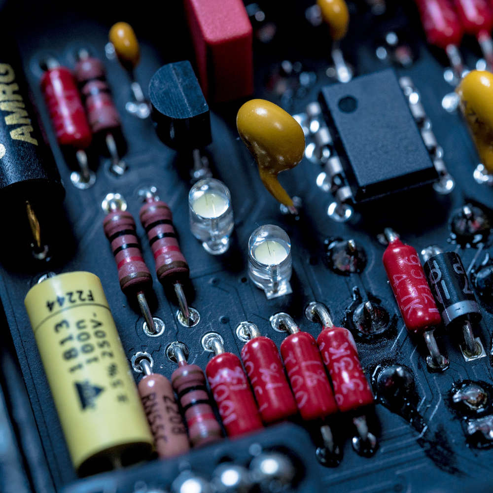 LEDクリッピングでレスポンスの高いオペアンプを使うことでピッキングニュアンスによる反応がとてもオープンで、かつそのオープンな歪をLEDだけでなくオペアンプ自体の歪み、そしてカップリングコンデンサの音の変化を駆使しながら作成しました。