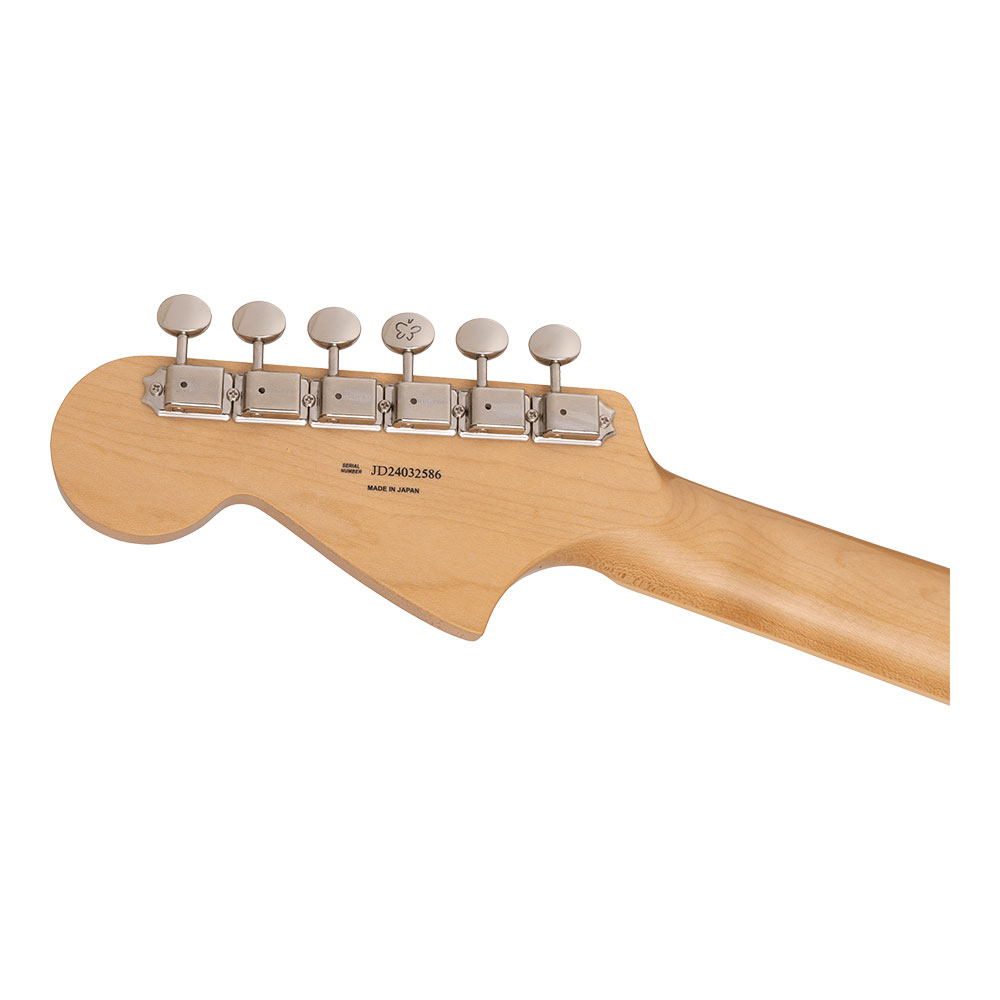 羊文学の塩塚モエカが長年愛用しているAmerican Vintage ’65 Jaguarをベースに、彼女のこだわりを再現したシグネイチャーモデルが誕生しました。エイジングされたソニックブルーをイメージしたオリジナルカラーに加え、水張りデカールを採用することで、ヴィンテージギターのような風格を演出しています。