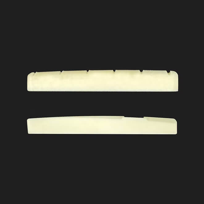 ボーンナットとボーンサドルは、ギターのサウンド特性に明るさを加えてくれます。高密度であるためサスティーンも向上し、ギター全体のサウンド・パフォーマンスが向上します。天然骨には自己潤滑性があり、弦の寿命を延ばします。