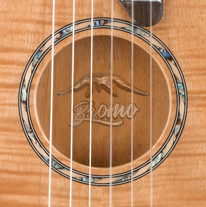 オープン・スタイルのヘッドストック・デザインは、軽量化を考慮しただけでなく、クラシックな美しさを誇り、ギター全体のデザイン・スタイルによりマッチしています。マザー・オブ・パールのヘッド・ロゴをはめ込むことで、Bromo Guitarsのアイコンである山型のデザインがより強調されています。