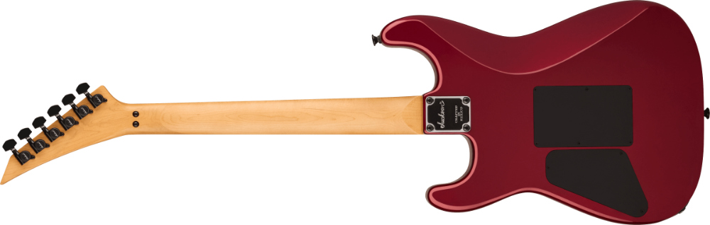 メイプルネックには、美しくエイジングされた木材のような琥珀色の輝きを再現するティント加工が施され、スピードプレイに最適化されたネックシェイプは、指が指板上を駆け抜けられるように設計されています。12〜16インチコンパウンドラジアスのメイプル指板には大型ドットインレイが施され、トップマウント式のFloyd Roseダブルロッキングトレモロなど、真のメタル/ハードロックファンが求める機能が満載です。かつてJacksonがLAシーンを席巻していた栄光を、今再び体現できます。