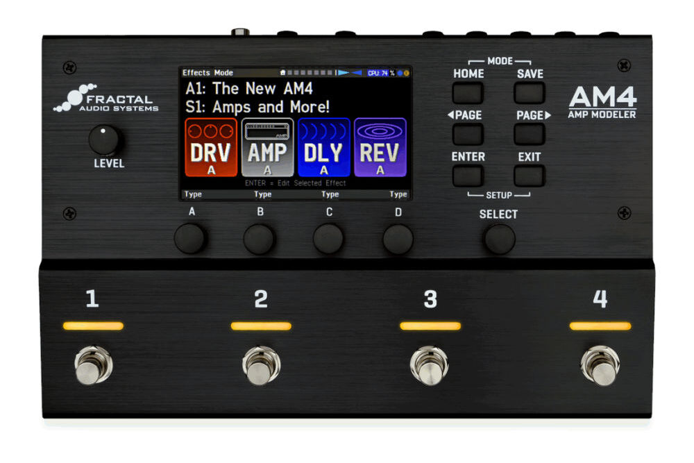 AM4 は、Fractal Audio Systems 社のフラッグシップ機に匹敵するトップクラスのサウンドと機能を、これまでにないほどコンパクトで扱いやすいフォーマットに凝縮したモデルです。
