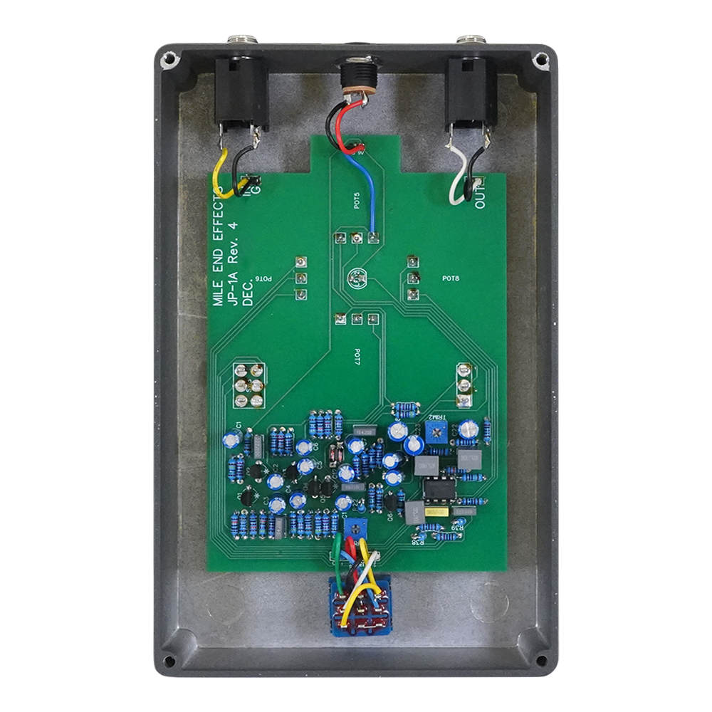 このオリジナル真空管エミュレーションではJFETのテストに膨大な時間を費やしました。Mile End Effectsの愛用するTelefunken ECC83マシンと同様に動作し、同様の倍音のレスポンスがあることを目指しました。特定のレンジでのみ動作するJFETを選択し、高い内部電圧を供給することでそのサウンドを完璧に再現できたと考えています。