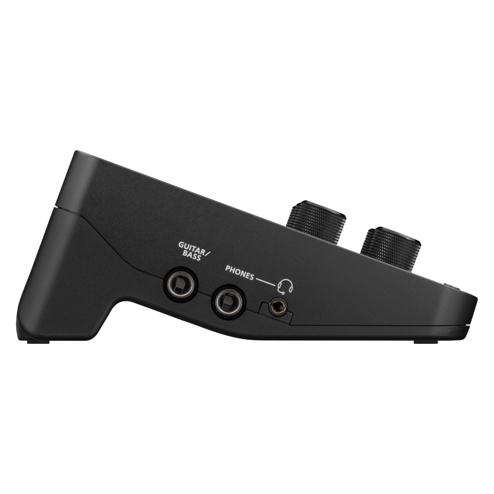 | 接続端子 | MIC/LINE(1、2)端子:XLR(ファンタム電源 DC48V、10mA) GUITAR/BASS端子:標準タイプ(ハイインピーダンス対応) LINE IN(L、R)端子:標準タイプ AUX端子:ステレオミニタイプ(TRRS) PHONES端子:ステレオ標準タイプ PHONES(MINI)端子:ステレオミニタイプ(CTIA、プラグインパワー対応) LINE OUT(L、R)端子:標準タイプ MIDI(IN、OUT)端子:ステレオミニタイプ USB端子:USB Type-C(USB Audio Class 2.0/1.0、MIDI) POWER端子:USB Type-C |