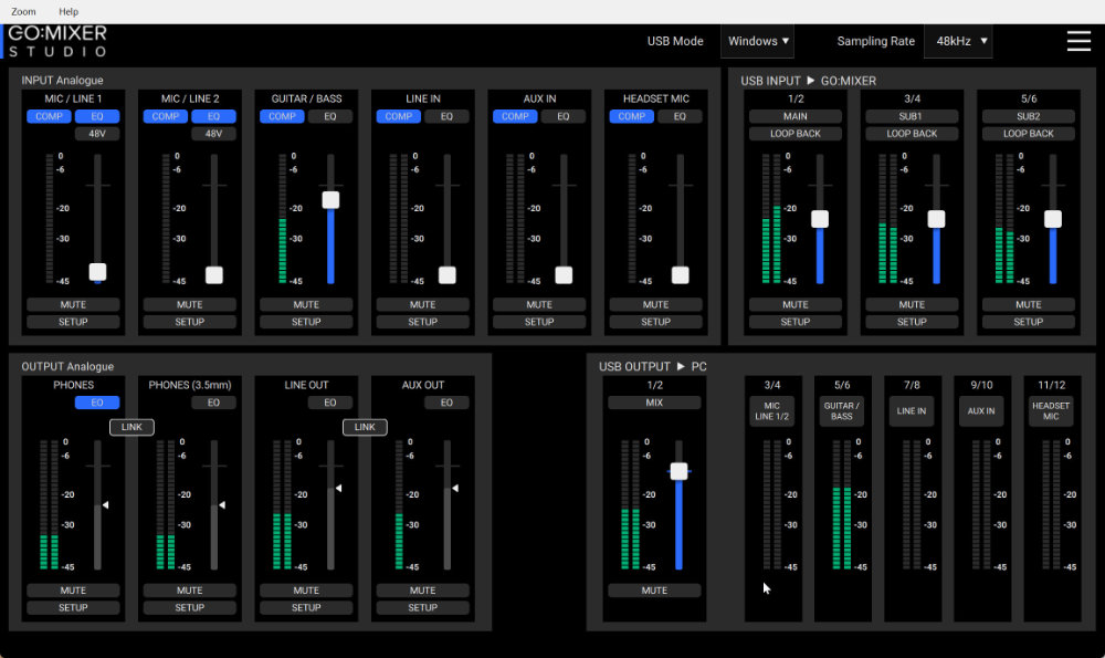 楽曲制作環境においては、PC用のアプリGO:MIXER Editorを用いることでより視覚的に設定を調整することができます。