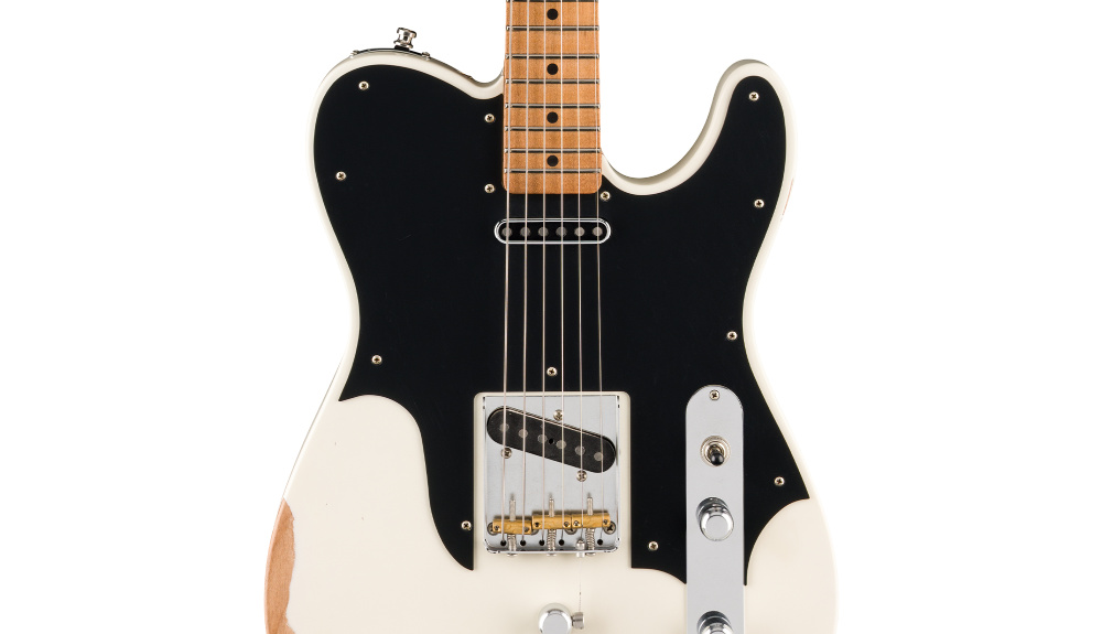 Road Wornオリンピックホワイトフィニッシュは、長年ステージで愛用されてきたギター特有の風合いとキャラクターを再現します。カスタムヴォイシングを施したJohn Osborne Telecasterピックアップ、カスタムピックガード、3つのコンペンセイテッドブラスバレルサドルにより、煌めくクリーントーンから力強いオーバードライブまで、幅広いサウンドを奏でます。