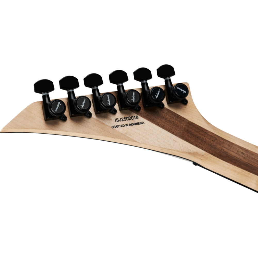 ピックアップにはダイレクトマウントのSeymour Duncan JBと’59を搭載し、シングルボリューム&トーン、そして5ウェイブレードスイッチというシンプルながらも実用的なコントロールレイアウトにより、直感的に多彩なサウンドメイクを行えます。Jacksonハードテイルブリッジは、極めて正確なイントネーションと揺るぎないチューニング安定性を実現します。