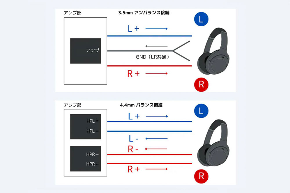 バランス接続は、左右チャンネルを独立した経路で伝送することで、信号同士の干渉を抑え、安定した再生環境を確保する接続方式です。