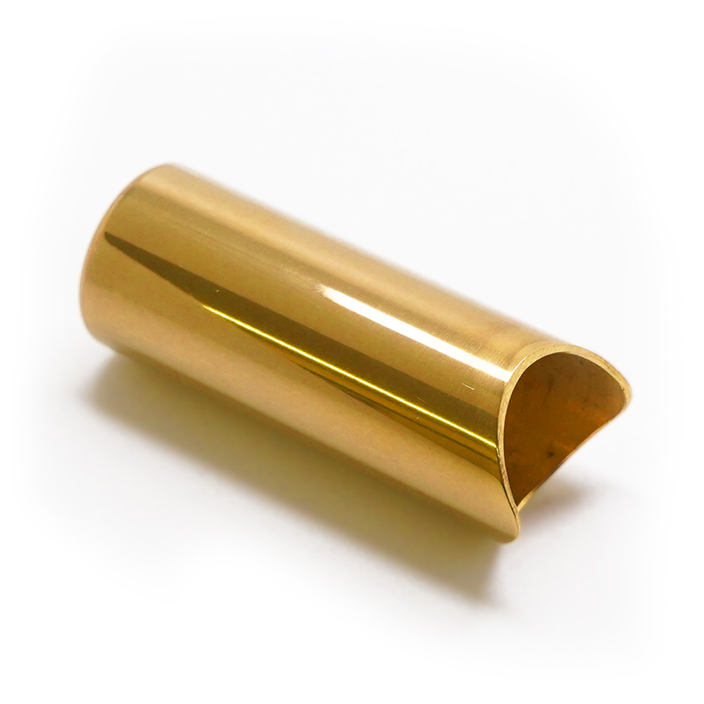 驚異的なサステインを実現するため、特別な重い真鍮素材を使用しました。内部テーパー設計により、スライド先端に向かってスライドの壁面が厚くなり、指先にはトーンリングを取り付けて重量を増やし、指をしっかりと固定します。